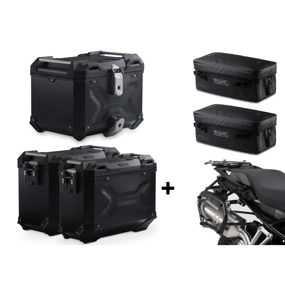 3x ALU kuffer SW-Motech Trax Adventure + tasker + stativer til F850GS, F750GS, sorte
