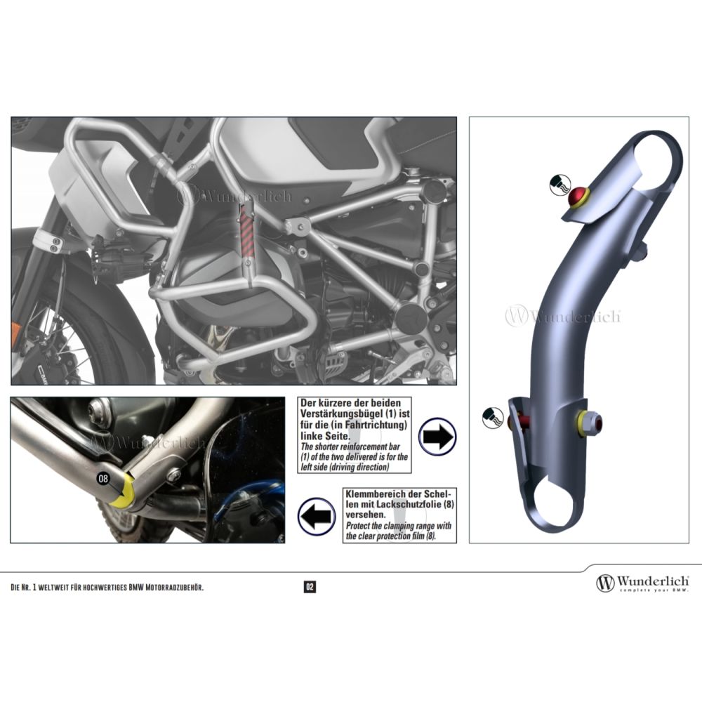 Rustfri forstærkning fra Wunderlich til den originale nederste ramme med udvidelse til R1250GS Adventure 2018-2024