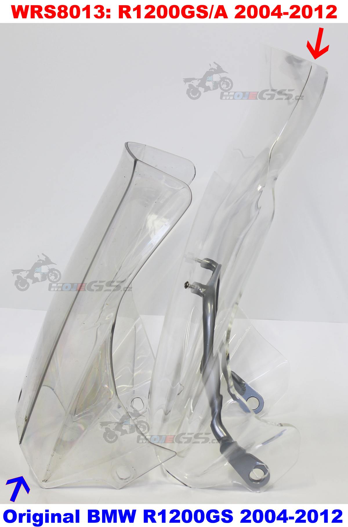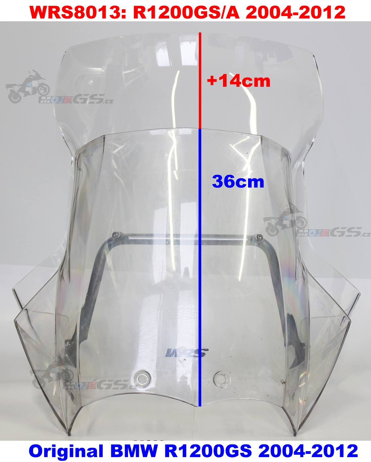 Comparison of the height of the WRS 50cm and the original plexiglass from the BMW R1200GS 2006: