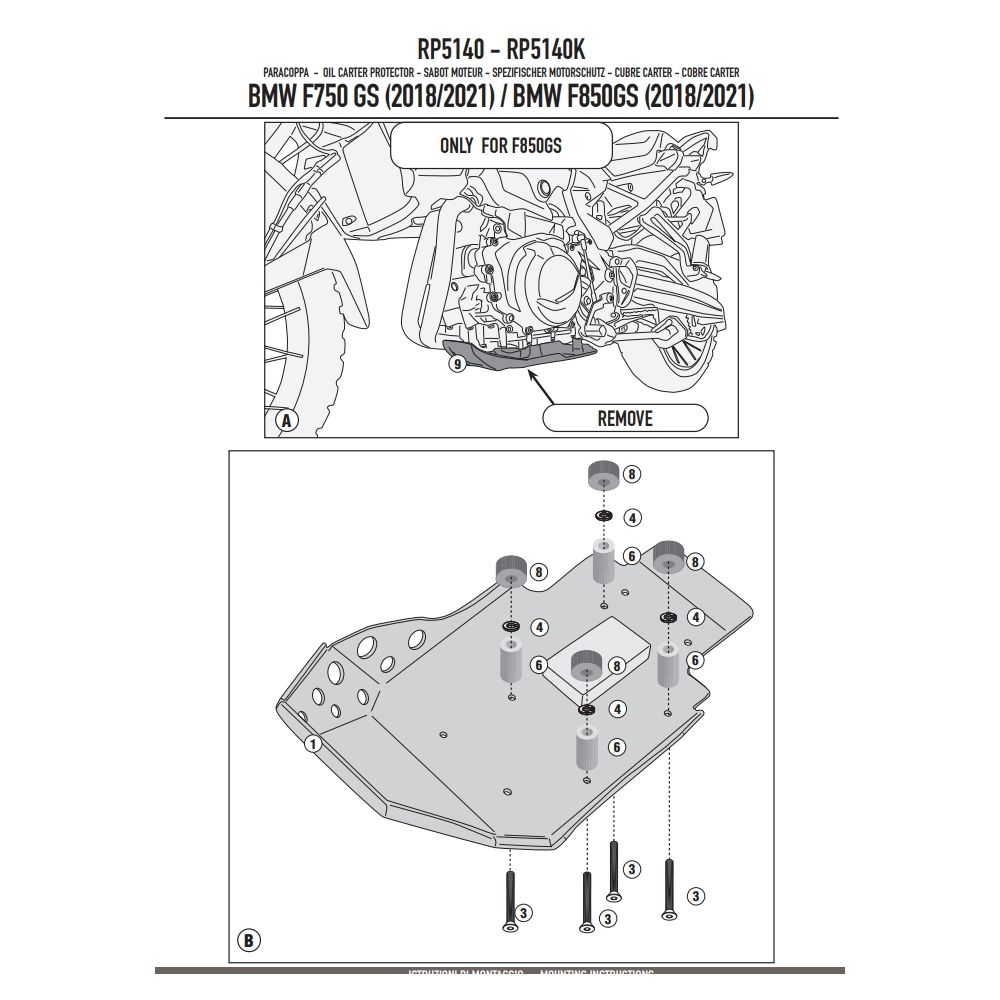 Aluminum engine cover Givi/Kappa for F850GS, F750GS