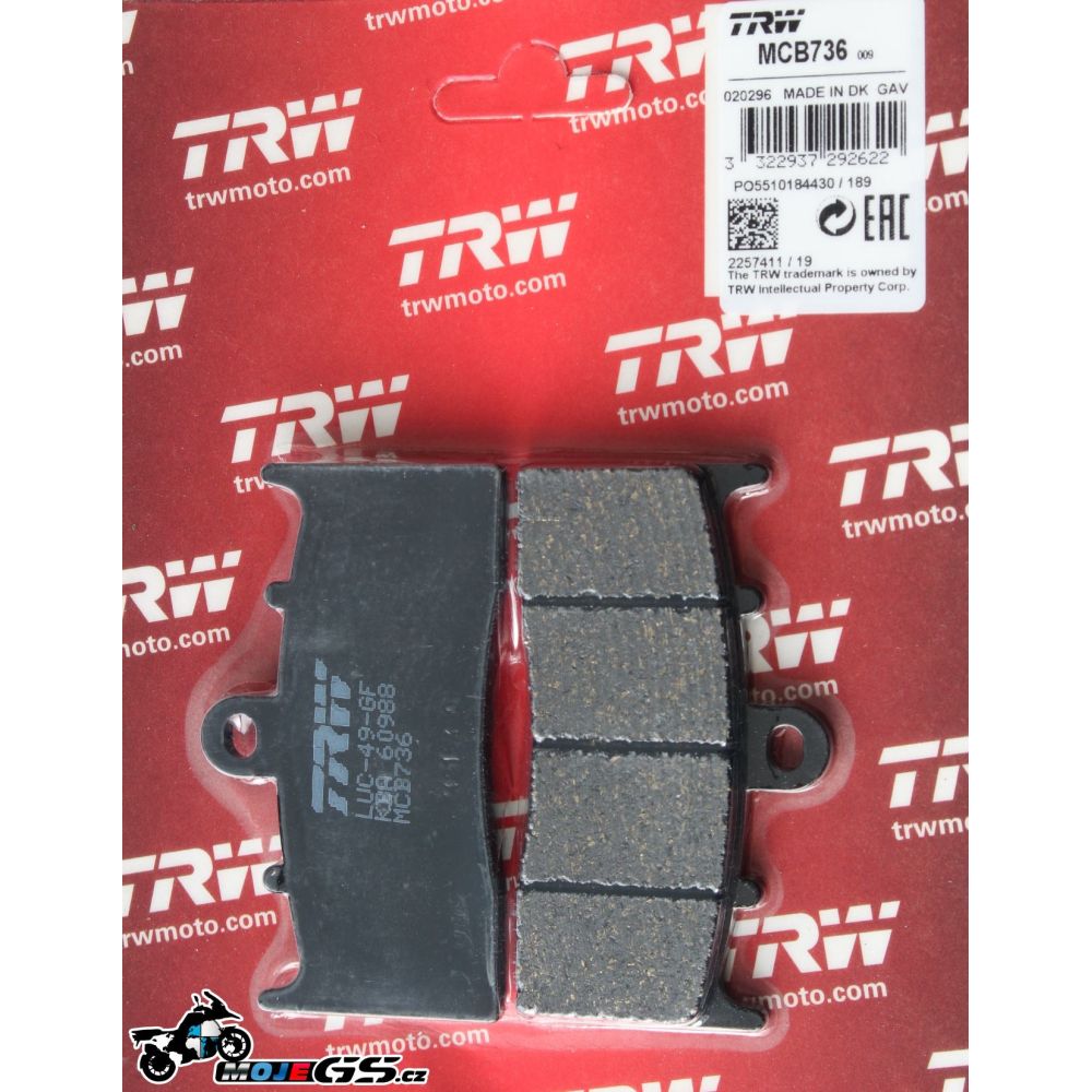 TRW Lucas MCB736 brake pad set for the front disc for BMW R1150GS Adventure with BMW-Tokico calipers.