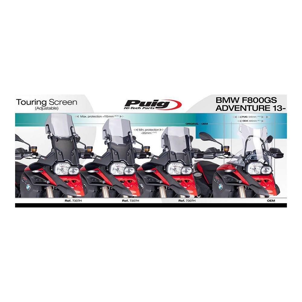 Reguleeritav tuuleklaas Puig 38-53cm BMW F800GS Adventure, kergelt suitsune