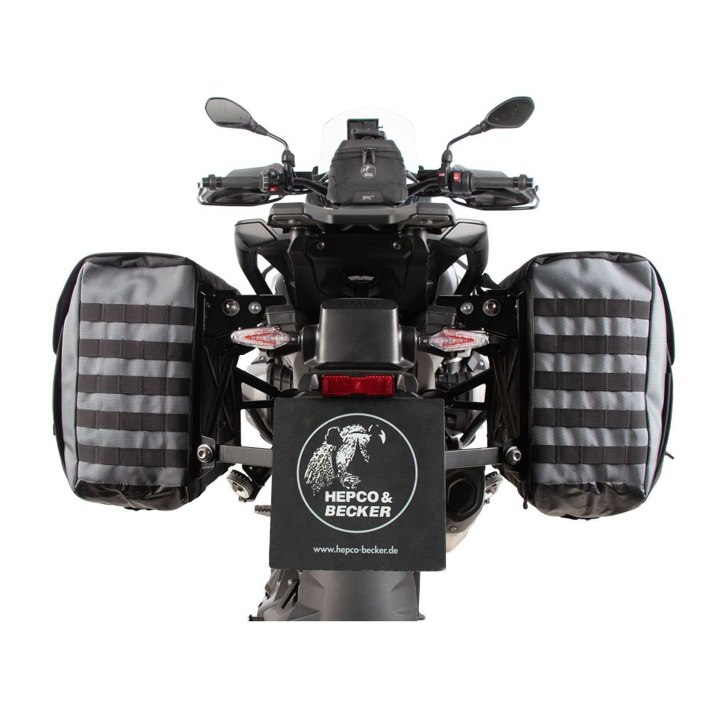 Hepco Becker külgkotisüsteem, mille mahutavus on 2x 33 liitrit. Valmistatud metallist, tekstilist ja plastikust. Need ühendavad kottide ja kõvade pagasi eelised. Tänu tugevale alusele kinnituvad need otse originaalpakkide Vario kanduritele. Seetõttu ei vaja te täiendavaid kandureid, kui soovite maanteereisidel sõita originaal Vario pakkidega ja off-road reisidele eelistate pehmeid pagasit.