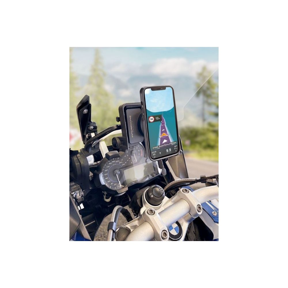 Adapter BMW Navigatorin pidikkeestä Interphone Ridesync / QUIKLOX USB-virransyötöllä varustettuun puhelimen pidikkeeseen