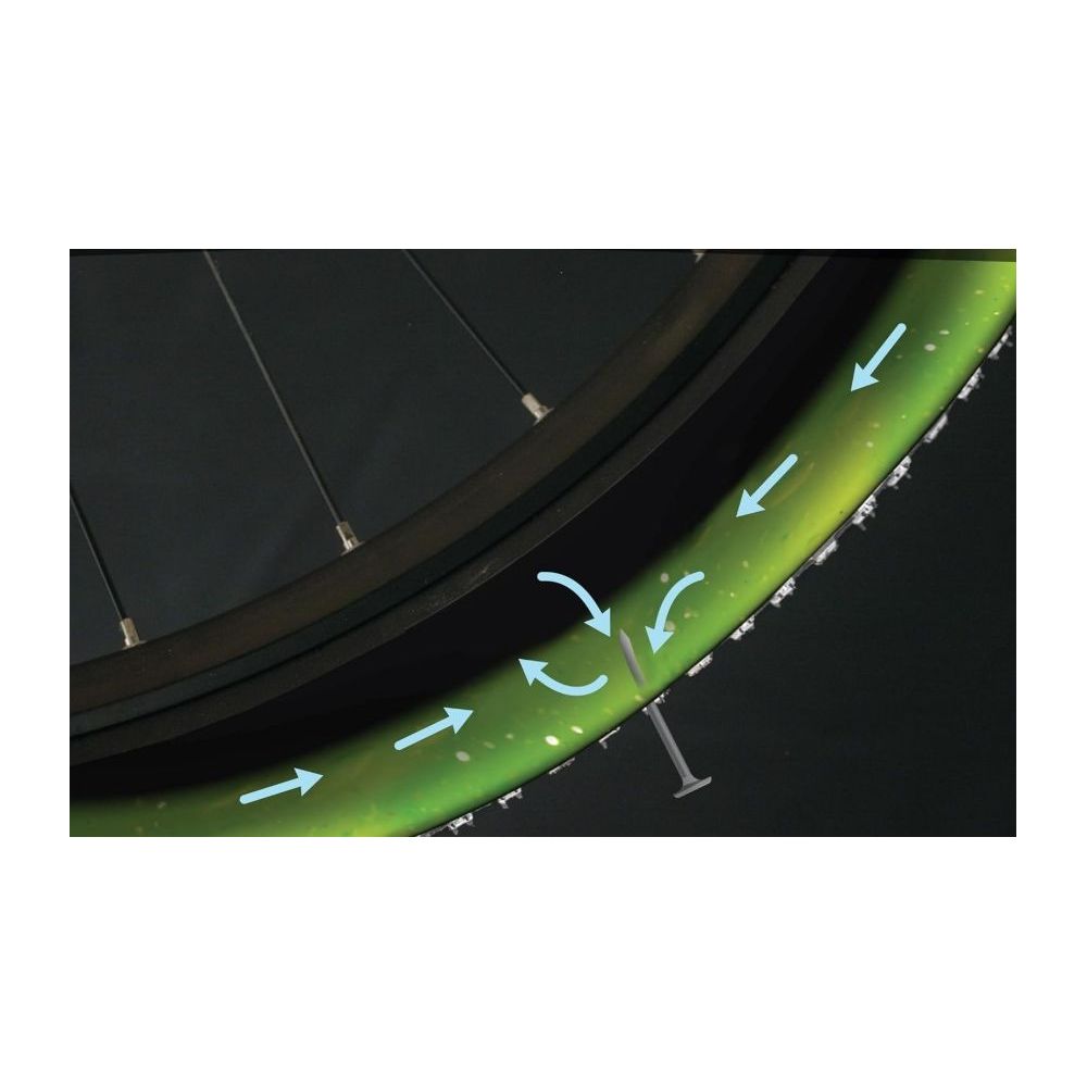 U rotirajućoj gumi tijekom vožnje, centrifugalna sila gura popravni mast Slime prema površini gaznog sloja i stvara zaštitni sloj koji odmah nakon svake rupice do veličine 6 mm ulazi u otvor i zatvara ga. Slime mast ostaje nakon primjene u gumi AKTIVAN (živ) još 2 godine. Slime nije namijenjen za rješavanje oštećenih bočnih stijenki guma, rubova, nepropusnosti felgi i također nepropusnih ventila. SLIME je namijenjen za brze popravke guma.