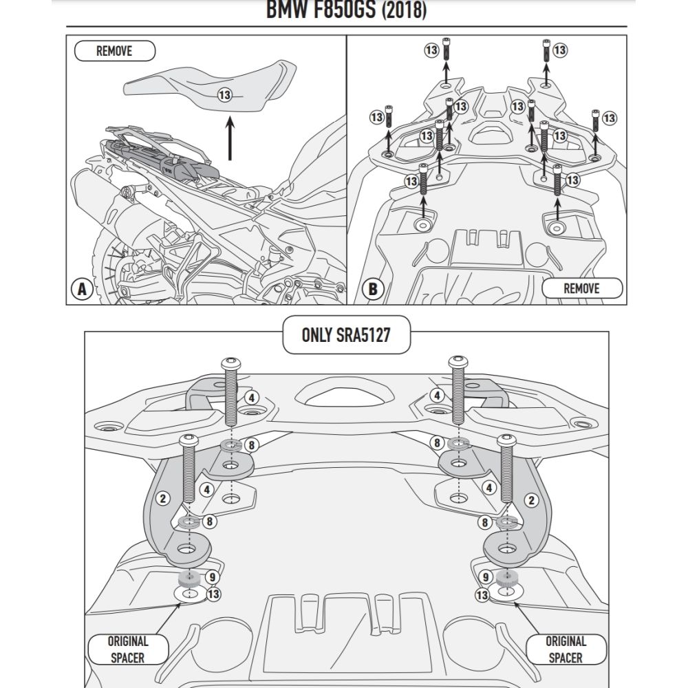 Metalinis stovas po topcase Kappa/Givi BMW F850GS, F750GS (nerūdijančio plieno laikiklis)