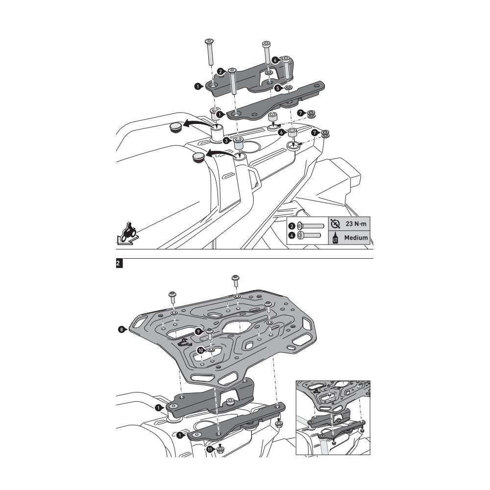 SW-Motech PRO (lygaus dugno) bakui tvirtinti naudokite arką: