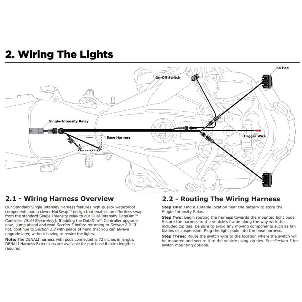 Standarta kabeļu komplekts ar slēdzi Denali gaismas