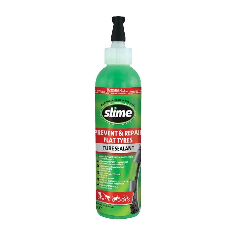 Podczas jazdy w obracającym się kole siła odśrodkowa wypycha masę uszczelniającą Slime na powierzchnię bieżnika, tworząc w ten sposób warstwę ochronną, która natychmiast po jakimkolwiek przebiciu do wielkości 6 mm wnika w otwór i go uszczelnia. Masa uszczelniająca Slime pozostaje po nałożeniu w oponie AKTYWNA (żywa) jeszcze przez 2 lat. Slime nie jest przeznaczony do naprawy uszkodzonych boków opon, stożków, nieszczelności obręczy opon oraz nieszczelnych zaworów. SLIME jest przeznaczony do szybkich napraw opon.