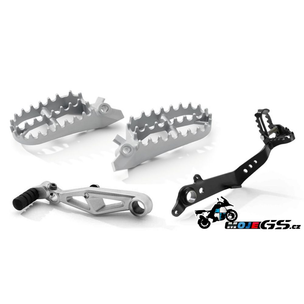 - široké strieborné enduro stúpačky pre BMW F850GS a F750GS. Zabezpečujú lepšiu stabilitu pri jazde na stúpačkách a vďaka zubom väčšiu istotu.