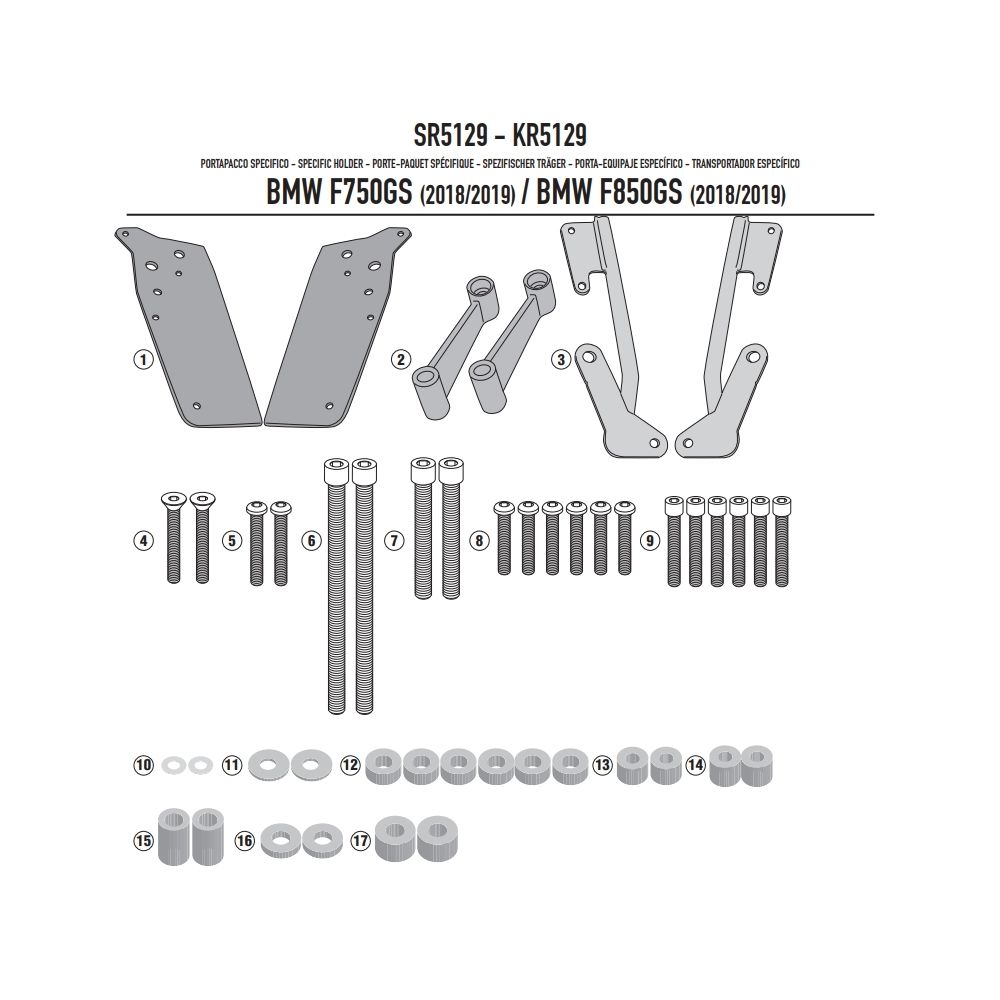 Kovinska plošča pod topcase Kappa/Givi za BMW F850GS 18-23, F800GS 2023+, F750GS 18-23, (plastični nosilec)