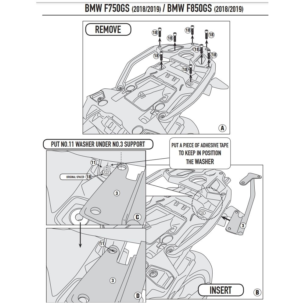 Metal plate under topcase Kappa/Givi for BMW F850GS 18-23, F800GS 2023+, F750GS 18-23, (plastic carrier)