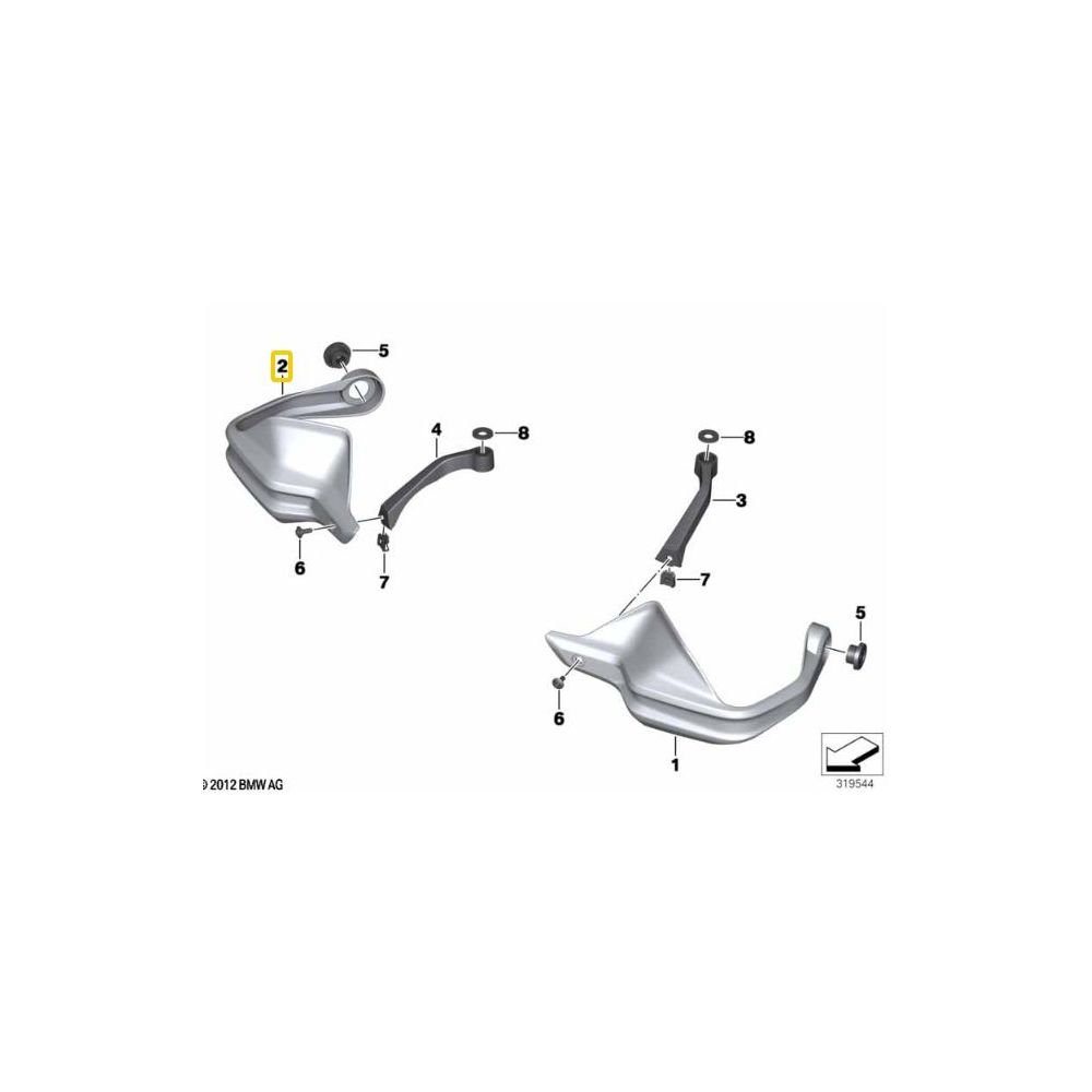 Originalt handskydd och paddlar till höger för BMW R1250GS/Adventure 2018-2024, R1200GS/Adventure LC 2013-2018, F800GS Adventure.