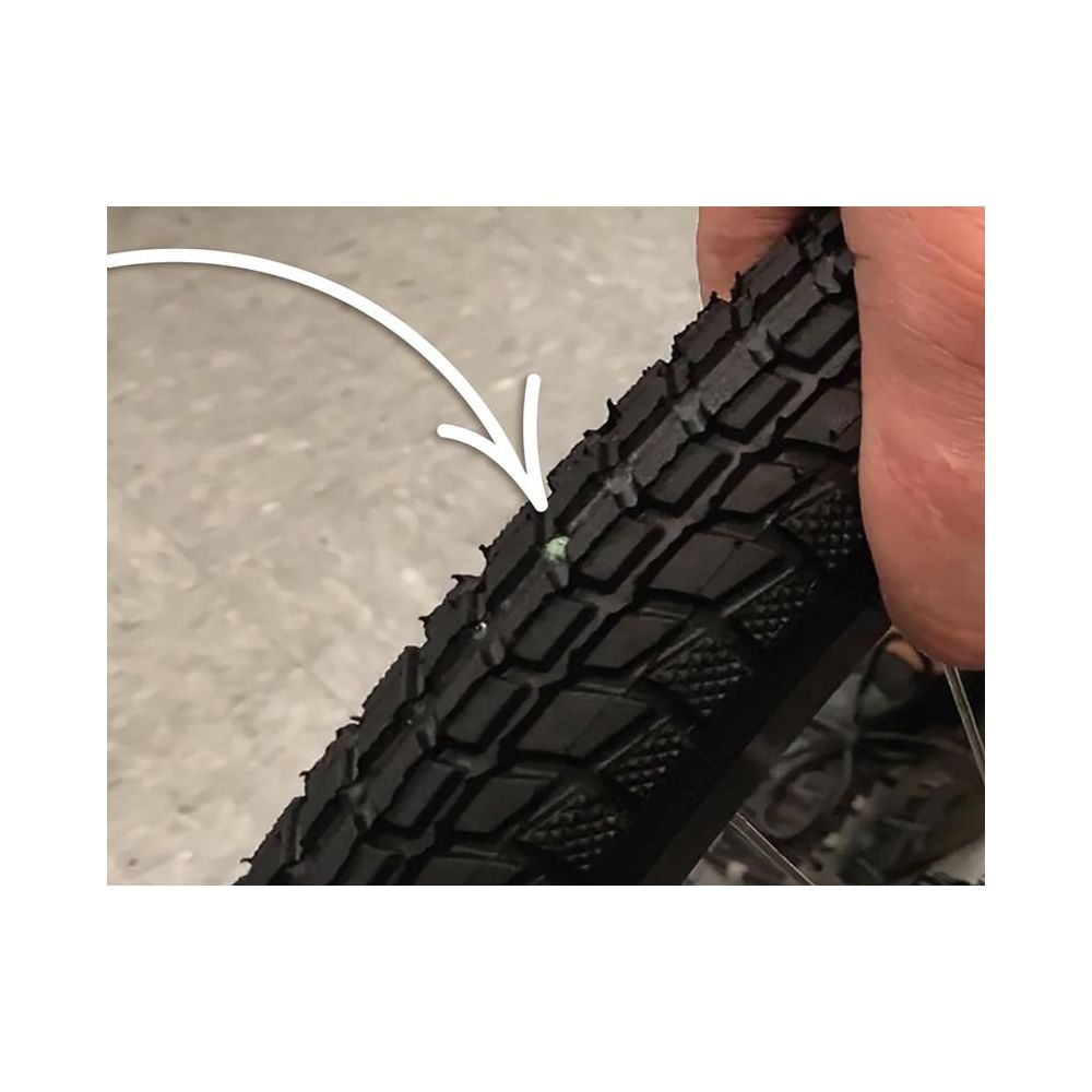 I den roterande däcken pressar centrifugalkraften tätningsmassan Slime mot slitbanan och skapar ett skyddande lager som omedelbart tränger in i vilket hål som helst upp till 6 mm och täpper till det. Slime tätningsmassa förblir AKTIV (levande) i däcket i ytterligare 2 år efter applicering. Slime är inte avsett för att åtgärda skadade sidoväggar, fälgar, läckage av däck och också läckande ventiler. SLIME är avsett för snabba däckreparationer.